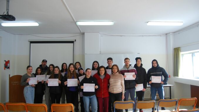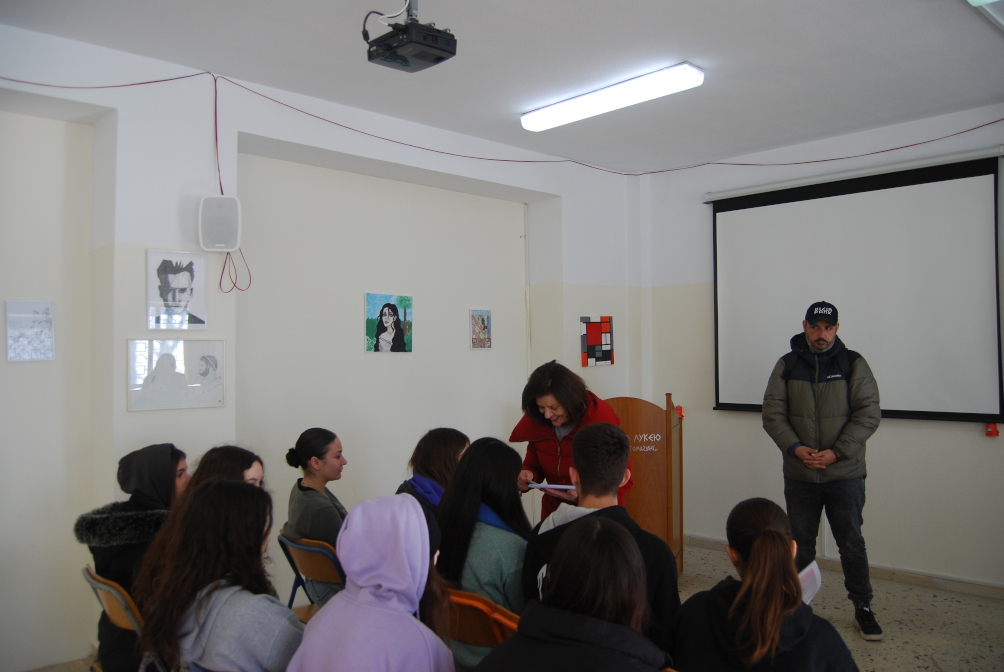 Τη Δευτέρα 29-1-2024 η πρόεδρος του Συλλόγου Καρκινοπαθών Έδεσσας και περιχώρων κ. Δανάη Τριγωνάκη επισκέφτηκε το σχολείο μας προκειμένου να βραβεύσει τους μαθητές και μαθήτριες που διοργάνωσαν το φιλανθρωπικό bazaar των Χριστουγέννων. Υπενθυμίζεται ότι εκείνη η δράση είχε φιλανθρωπικό χαρακτήρα και απέφερε ένα σημαντικό χρηματικό ποσό, το μεγαλύτερο μέρος του οποίου προσφέρθηκε στον Σύλλογο Καρκινοπαθών της πόλης μας.