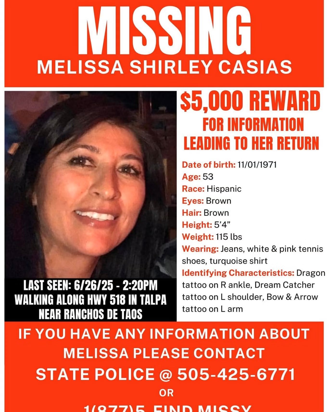 Η Κασίας εξαφανίστηκε στις 26 Ιουνίου 2025 από τη γενέτειρά της, το Ράντσος ντε Τάος, περίπου 65 μίλια από τη Σάντα Φε. Εκείνο το πρωΐ η 53χρονη είχε αφήσει τον σύζυγό της που επίσης εργάζεται στο εργαστήριο, για να δουλέψει με τηλεργασία σύμφωνα με το Taos News. Όταν η κόρη της επέστρεψε στο σπίτι το αυτοκίνητο της μητέρας της ήταν εκεί, αλλά εκείνη είχε εξαφανιστεί.