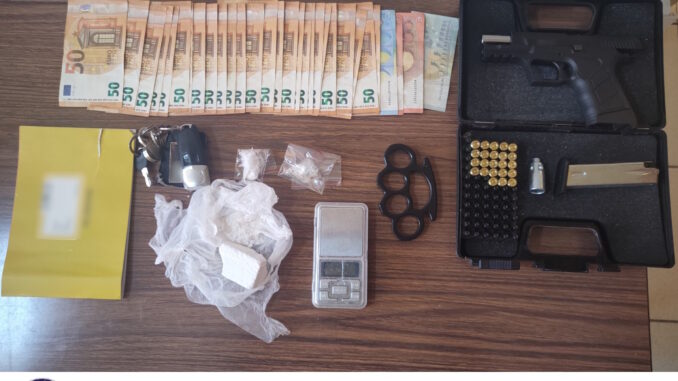 Κατασχέθηκαν 58,5 γραμμάρια κοκαΐνης, 1 πιστόλι κρότου και 1.345 ευρώ