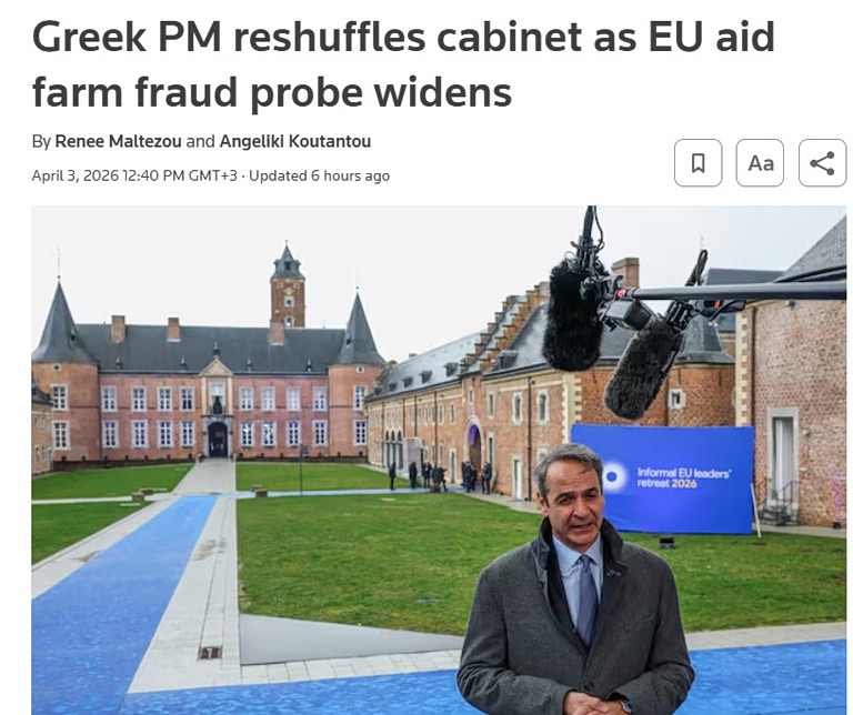 Το Reuters προσθέτει ότι ο πρωθυπουργός Κυριάκος Μητσοτάκης προχώρησε σε άμεσο ανασχηματισμό, επιχειρώντας να περιορίσει τις πολιτικές συνέπειες. Υπενθυμίζει ότι ήδη από το προηγούμενο έτος, Ευρωπαίοι εισαγγελείς είχαν εντοπίσει δεκάδες περιπτώσεις κτηνοτρόφων που φέρονται να δήλωναν ψευδώς ιδιοκτησία βοσκοτόπων για να εισπράξουν εκατομμύρια ευρώ από ευρωπαϊκά κονδύλια, με πιθανή συνδρομή κρατικών υπαλλήλων και πολιτικών.