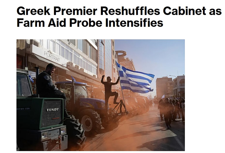 Το Bloomberg παρουσιάζει την υπόθεση ως μείζον πολιτικό και θεσμικό ζήτημα, τονίζοντας ότι ο ανασχηματισμός πραγματοποιήθηκε ενώ εντείνονται οι έρευνες της Ευρωπαϊκής Ένωσης για πιθανή κατάχρηση αγροτικών κονδυλίων. Αναφέρει ότι οι υπουργοί που παραιτήθηκαν συνδέονται με την έρευνα για κακή χρήση ευρωπαϊκών πόρων και ότι η Ευρωπαϊκή Εισαγγελία ζήτησε την άρση ασυλίας 11 βουλευτών, μεταξύ των οποίων και υπουργών. Υπογραμμίζει επίσης ότι το σκάνδαλο έχει μετατραπεί σε βασικό πεδίο πολιτικής αντιπαράθεσης στην Ελλάδα, με την αντιπολίτευση να ασκεί έντονη πίεση.