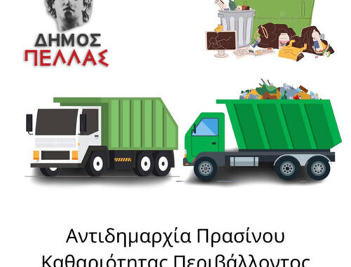 Η Αντιδημαρχία Περιβάλλοντος του Δήμου Πέλλας ενημερώνει ότι ενόψει των επικείμενων αργιών και εξαιτίας του προγράμματος λειτουργίας του ΧΥΤΑ η αποκομιδή απορριμμάτων και ανακυκλώσιμων θα διεξαχθεί με έκτακτο πρόγραμμα.