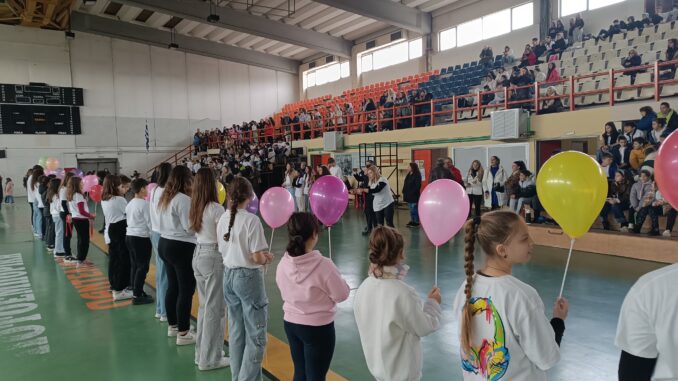 Με σύνθημα “ενωμένοι στη διαφορετικότητα” στο κλειστό Γυμναστήριο της Αριδαίας, οι μαθητές, οι εκπαιδευτικοί, οι γονείς και οι φίλοι τους ανοίξαμε μια μεγάλη αγκαλιά στα δικά μας άτομα.