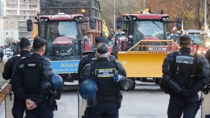 Αγρότες με τρακτέρ απέκλεισαν δρόμους, εκτόξευσαν πέτρες, πατάτες και αυγά και έριξαν πυροτεχνήματα για να διαμαρτυρηθούν κατά της συμφωνίας, με την αστυνομία να απαντά με δακρυγόνα και υδροφόρα οχήματα. Έκαψαν λάστιχα και ένα ψεύτικο ξύλινο φέρετρο με τη λέξη «γεωργία». Ακόμα και το χριστουγεννιάτικο δέντρο έγινε παρανάλωμα.