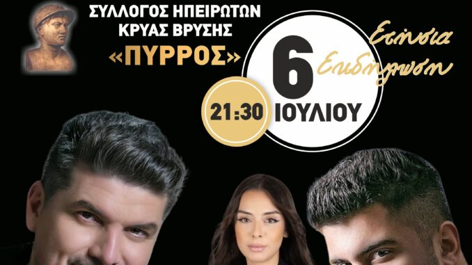 Η μεγάλη μουσικοχορευτική εκδήλωση του Συλλόγου Ηπειρωτών Κρύας Βρύσης – 6 Ιουλίου με τον Γιάννη Καψάλη