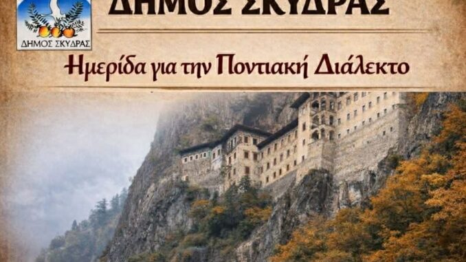 Ο Δήμος Σκύδρας διοργανώνει ημερίδα για την Ποντιακή διάλεκτο που θα πραγματοποιηθεί στο Πνευματικό Κέντρο Σκύδρας, το Σάββατο 25 Απριλίου 2026 κι ώρα 17:00΄.