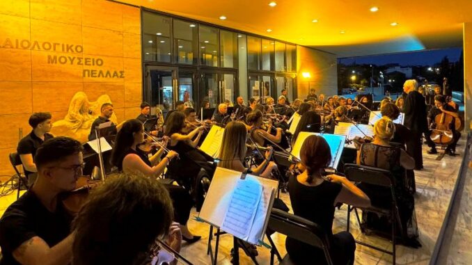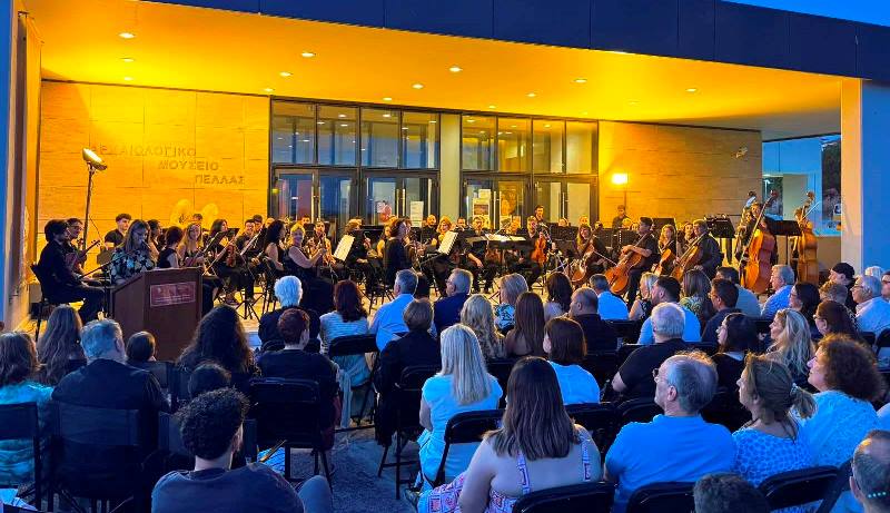 Ειδικότερα, παρουσία του Δημάρχου Πέλλας Στάθη Φουντουκίδη, αντιδημάρχων,συμβούλων, εκπροσώπων φορέων, αρχών και πλήθους πολιτών, πραγματοποιήθηκε την Πέμπτη στις 9.00 το βράδυ, στον κατάμεστο αύλειο χώρο του Αρχαιολογικού Μουσείου Πέλλας, μια εξαιρετικά επιτυχημένη μουσική εκδήλωση με την Συμφωνική Ορχήστρα της Φιλαρμονικής Εταιρείας Κερκύρας.