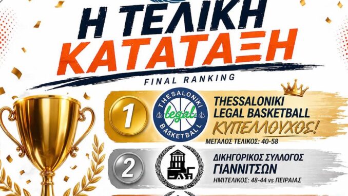 Με μεγάλη επιτυχία ολοκληρώθηκε χθες, 05-04-2026, στα Γιαννιτσά η Τελική Φάση (FinalFour) του 3ουΚυπέλλου Μπάσκετ Δικηγορικών Συλλόγων Ελλάδος & Κύπρου.