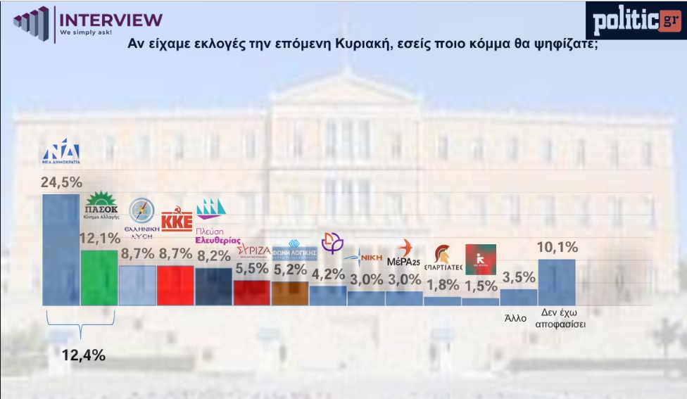 Το ποσοστό των αναποφάσιστων ψηφοφόρων είναι στο 10,1%.