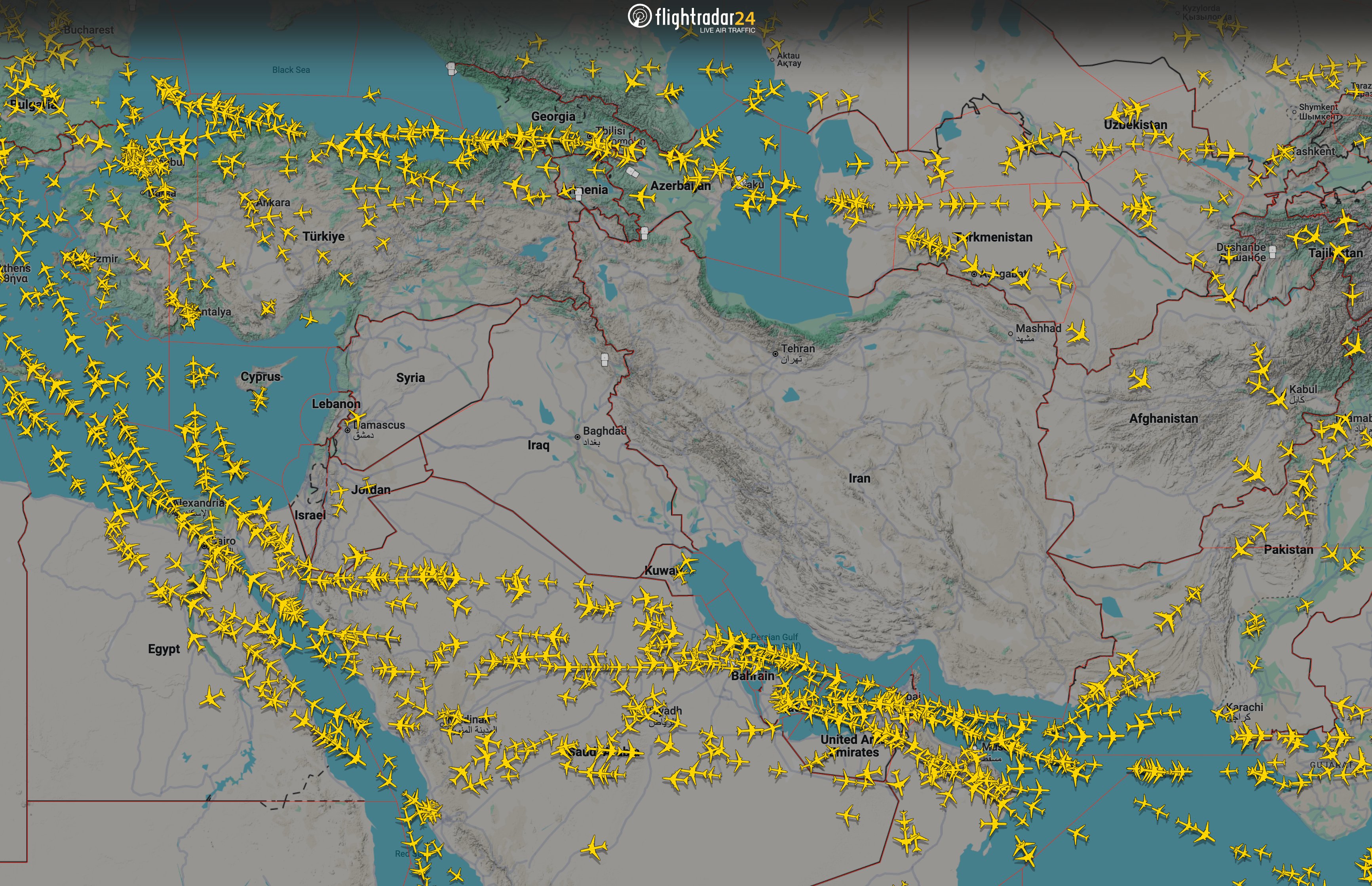 Ο ιστότοπός της έδειξε ότι οι αεροπορικές εταιρείες δεν πετούσαν στον εναέριο χώρο πάνω από το Ιράν, το Ιράκ, τη Συρία και το Ισραήλ. Επέλεξαν άλλες διαδρομές, όπως βόρεια μέσω της Κασπίας Θάλασσας ή νότια μέσω της Αιγύπτου και της Σαουδικής Αραβίας, ακόμη και αν αυτό έχει ως αποτέλεσμα υψηλότερο κόστος και μεγαλύτερο χρόνο πτήσης.