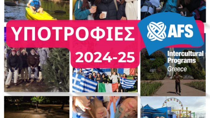 Μέχρι 15 Φεβρουαρίου γίνονται δεκτές οι αιτήσεις για τις υποτροφίες του 2024-25. Περισσότερες πληροφορίες και δήλωσης ενδιαφέροντος στην ιστοσελίδα https://afs.org.gr