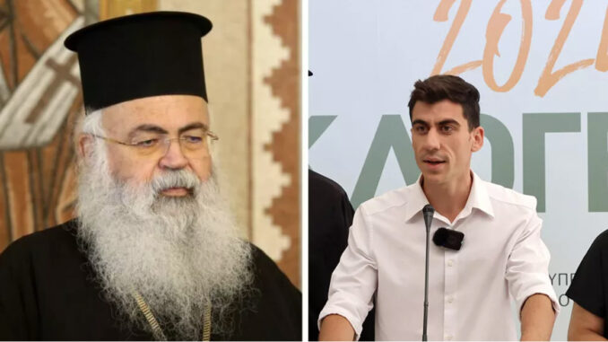 Σφοδρή επίθεση στον κύπριο ευρωβουλευτή Φειδία Παναγιώτου αλλά και σ’ εκείνους που τον ψήφισαν, εξαπέλυσε ο Αρχιεπίσκοπος Κύπρου Γεώργιος (στις φωτογραφίες αρχείου από philenews.com, επάνω, ο Αρχιεπίσκοπος Κύπρου και ο Φειδίας).