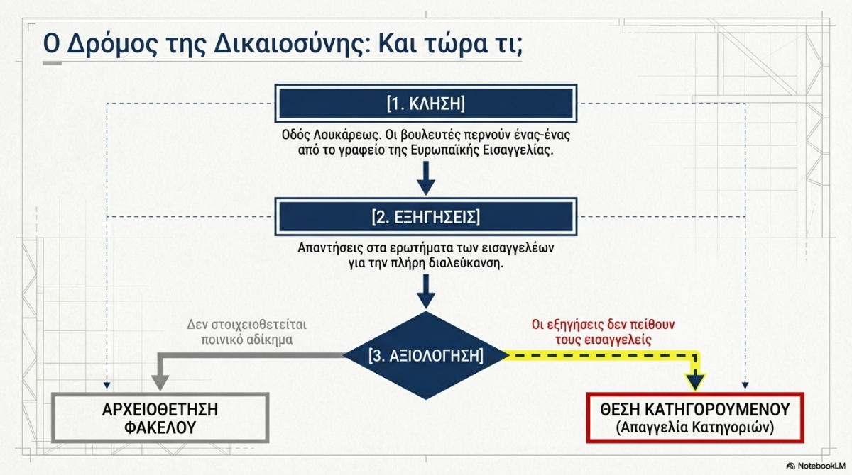 Για όσα πρόσωπα οι εισαγγελικοί λειτουργοί κρίνουν ότι τελικά δεν στοιχειοθετείται το ποινικό αδίκημα για το οποίο αιτήθηκαν την άρση της ασυλίας τους, ο φάκελος θα αρχειοθετηθεί. Αντίθετα, όσοι πάλι δεν καταφέρουν να πείσουν με τα επιχειρήματά τους, τότε στο επόμενο στάδιο θα βρεθούν στη θέση του κατηγορουμένου.