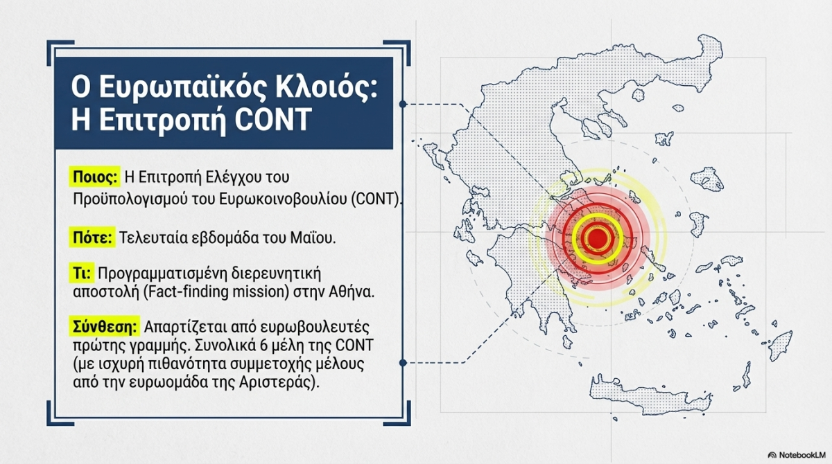Με τις εξελίξεις να είναι καταιγιστικές, σύμφωνα με ασφαλείς πηγές του in, η αρμόδια Επιτροπή Ελέγχου του Προϋπολογισμού του Ευρωκοινοβουλίου (CONT) έχει προγραμματίσει την τελευταία εβδομάδα του Μαΐου διερευνητική αποστολή στην Αθήνα.
