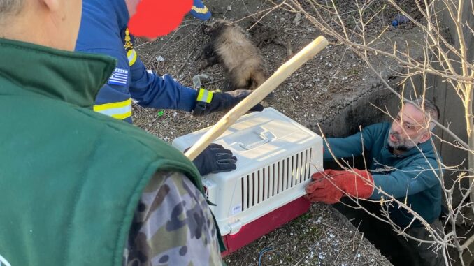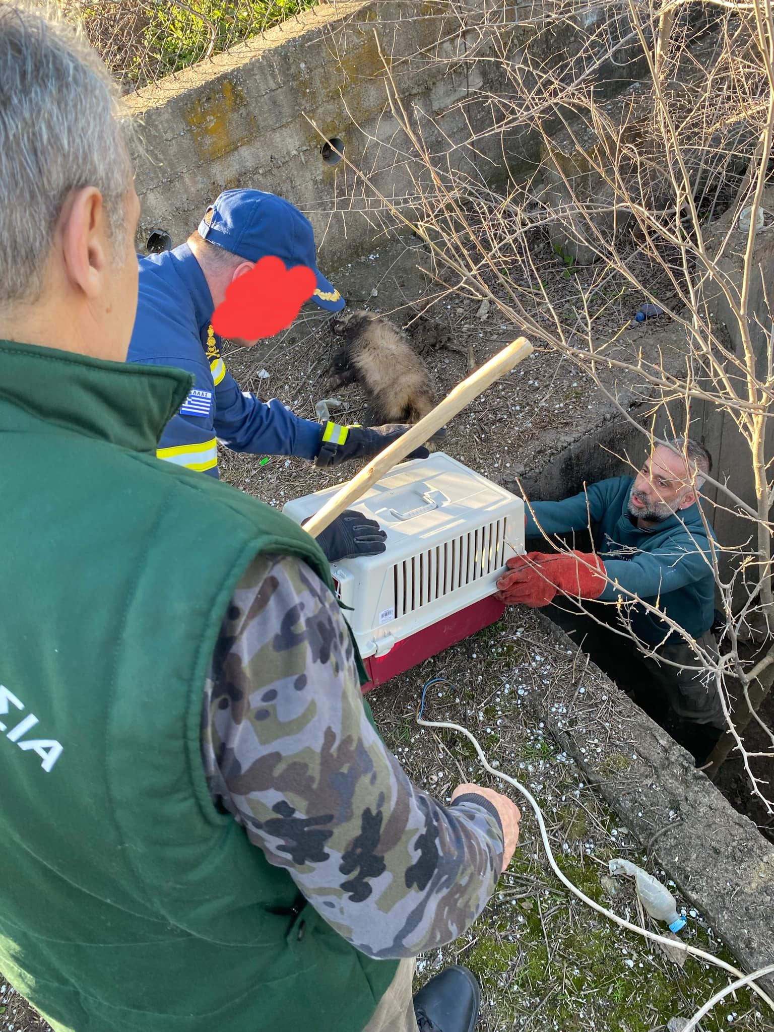 Απεγκλωβισμός Ασβού από φρεάτιο της ΔΕΗ έξω από τα Γιαννιτσά