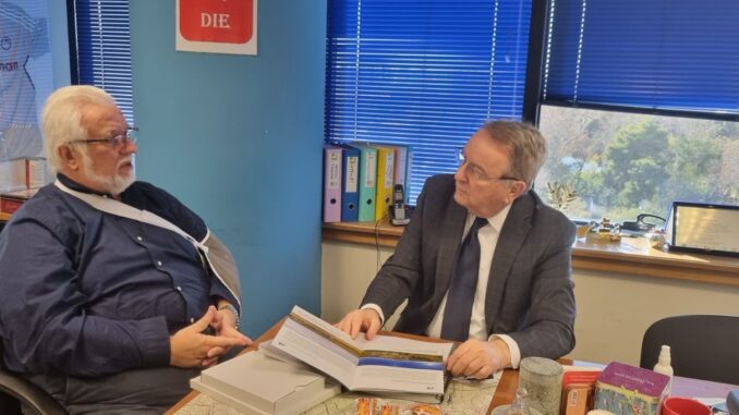 Κύριο δε θέμα της συζήτησης αποτέλεσε το Φράγμα Αλμωπαίου, του οποίου την εξέλιξη υλοποίησης, ο πρώην Υπουργός παρακολουθεί από κοντά και αδιάλειπτα.