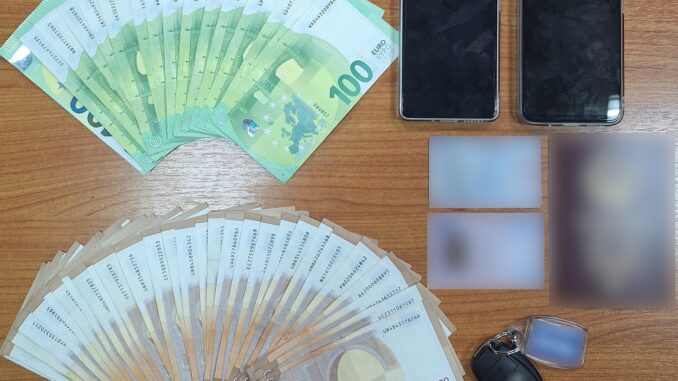 Στην κατοχή του βρέθηκαν και κατασχέθηκαν το χρηματικό ποσό των (3.100) ευρώ και (2) κινητά τηλέφωνα.