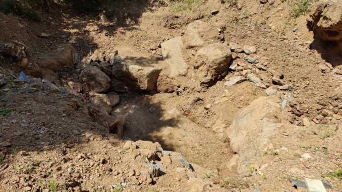 Επιπλέον, έπειτα από αυτοψία που διενεργήθηκε σε σημείο εντός κηρυγμένου αρχαιολογικού χώρου, διαπιστώθηκε η ύπαρξη οπής (τρύπας) διαμέτρου 2,5 μέτρων και βάθους, τουλάχιστον -10- μέτρων, στην είσοδο της οποίας είχαν τοποθετηθεί διάφορα ξύλα, ενώ δίπλα βρισκόταν πλαστικό κάλυμμα (μουσαμάς).