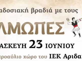 Παραδοσιακή βραδιά με τους ΑΛΜΩΠΕΣ Παρασκευή 23/6 στον προαύλιο χώρο του ΙΕΚ Αριδαίας. Με την ορχήστρα Ήχος Αλμωπίας, στο Κλαρίνο Δημήτρης Γκιώσης […]