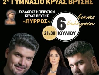 Η μεγάλη μουσικοχορευτική εκδήλωση του Συλλόγου Ηπειρωτών Κρύας Βρύσης “Ο ΠΥΡΡΟΣ” είναι γεγονός! Φέτος θα πραγματοποιηθεί την Κυριακή 6 Ιουλίου στο προαύλιο […]