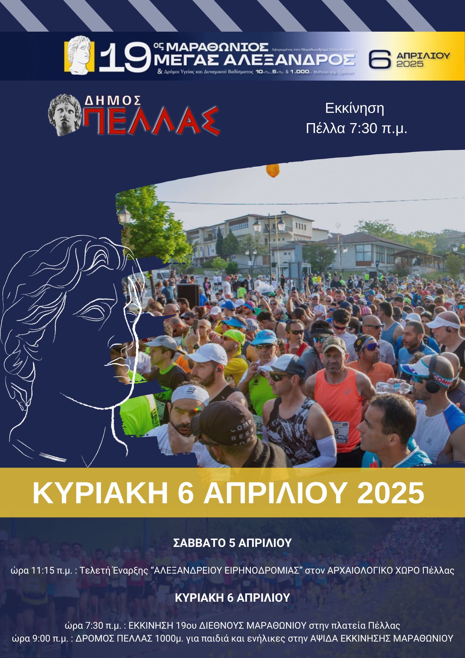 Η Τελετή Έναρξης της ΑΛΕΞΑΝΔΡΕΙΟΥ ΕΙΡΗΝΟΔΡΟΜΙΑΣ του 19ου Διεθνούς Μαραθωνίου θα πραγματοποιηθεί στον αρχαιολογικό χώρο της Πέλλας.