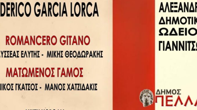 Το Αλεξάνδρειο Δημοτικό Ωδείο Γιαννιτσών παρουσιάζει Romancero Gitano και Ματωμένο Γάμο (Lorca/Θεοδωράκης/Χατζιδάκις)