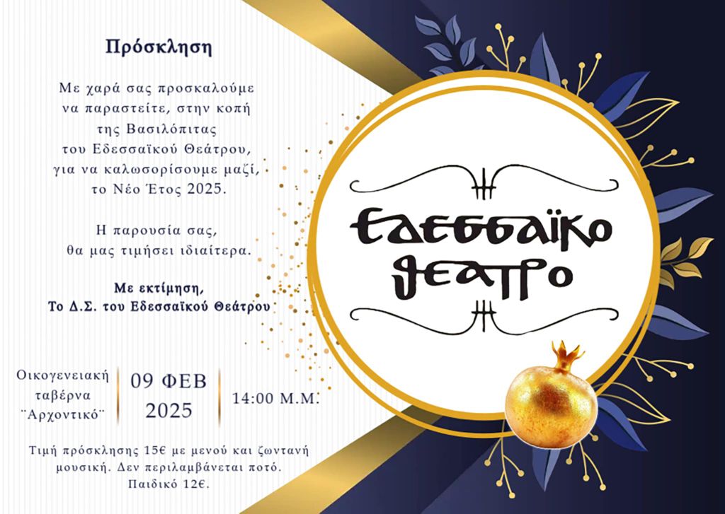 Το Εδεσσαϊκό Θέατρο προσκαλεί όσους ενδιαφέρονται να καταθέσουν πρόταση για νέα παραγωγή, για την τρέχουσα Θεατρική Περίοδο, την Κυριακή 3/8/2025 στις 18.30 […]